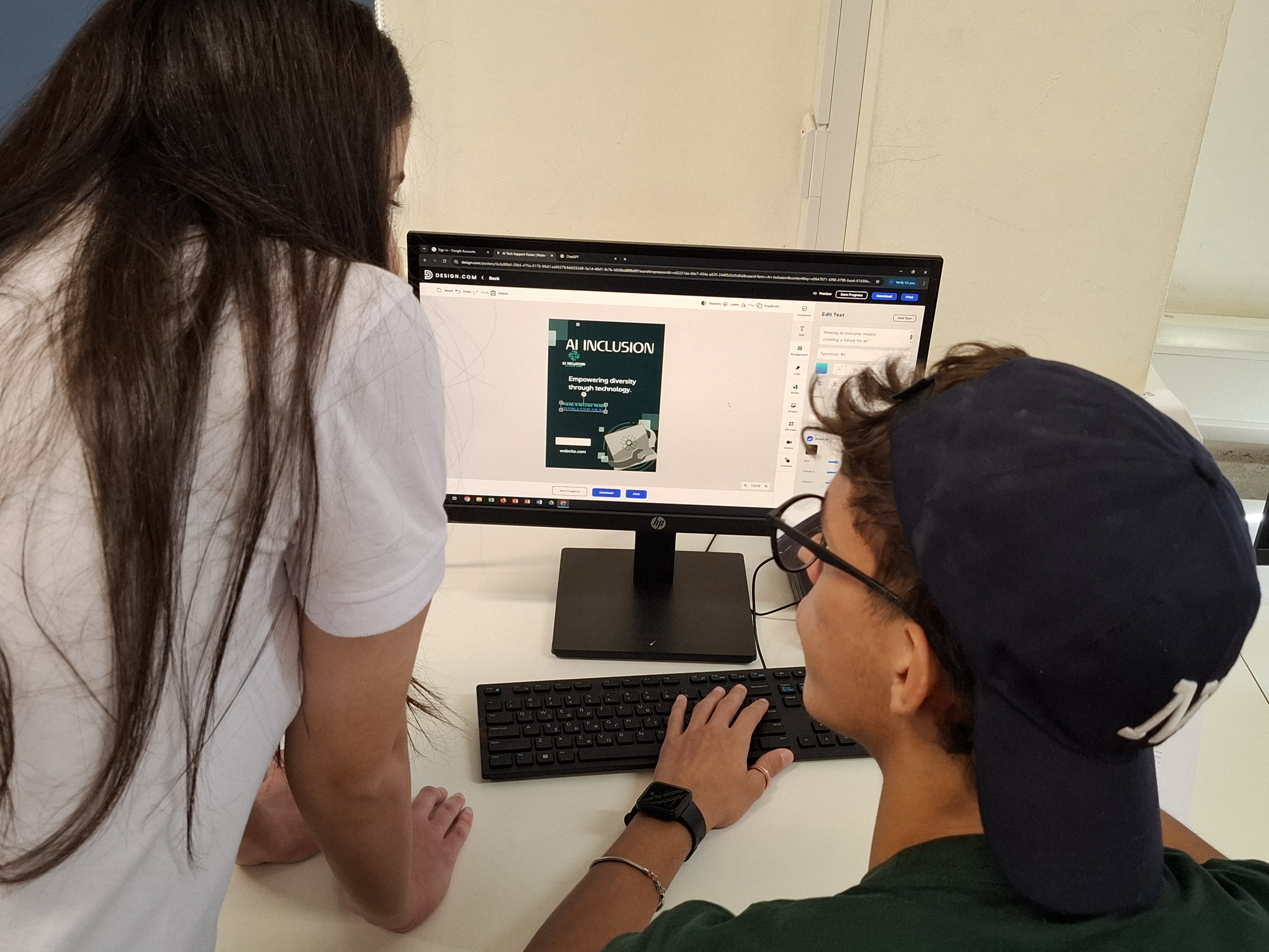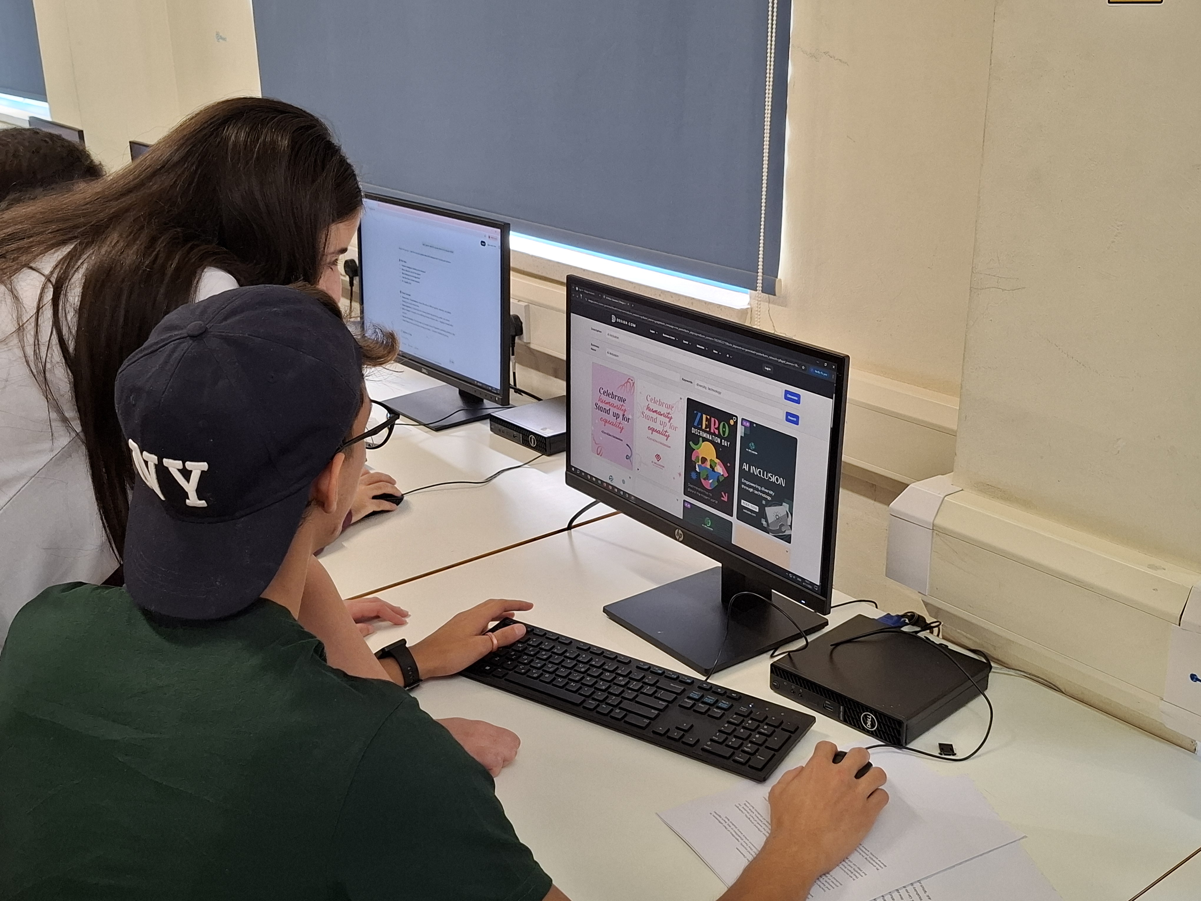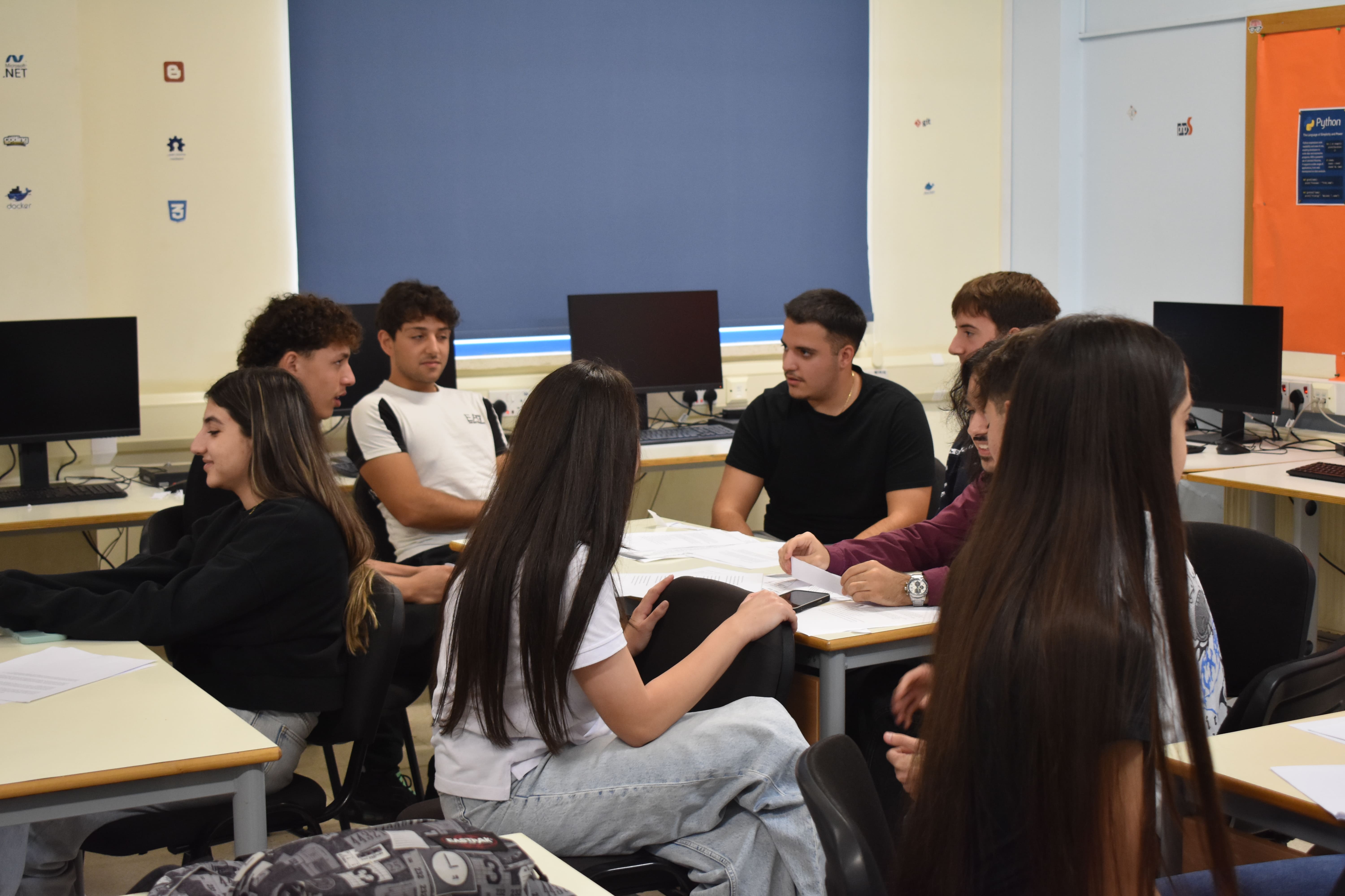 Η δεύτερη ημέρα της επίσκεψης Erasmus+ ήταν αφιερωμένη στη δημιουργικότητα, τη συνεργασία και τη βιωματική μάθηση. Μαθητές από το Λύκειο Κοκκινοχωρίων Φώτη Πίττα και το I.I.S. “Piazza Della Resistenza” Monterotondo (RM) 🇮🇹 συμμετείχαν σε εργαστήριο Πληροφορικής με τον κ. Κωνσταντίνο Δημητρίου, καθηγητή Πληροφορικής, όπου εργάστηκαν σε μεικτές ομάδες για τη δημιουργία ψηφιακών αφισών. Η δραστηριότητα ενίσχυσε τις ψηφιακές δεξιότητες, την ομαδικότητα και την αποτελεσματική επικοινωνία.