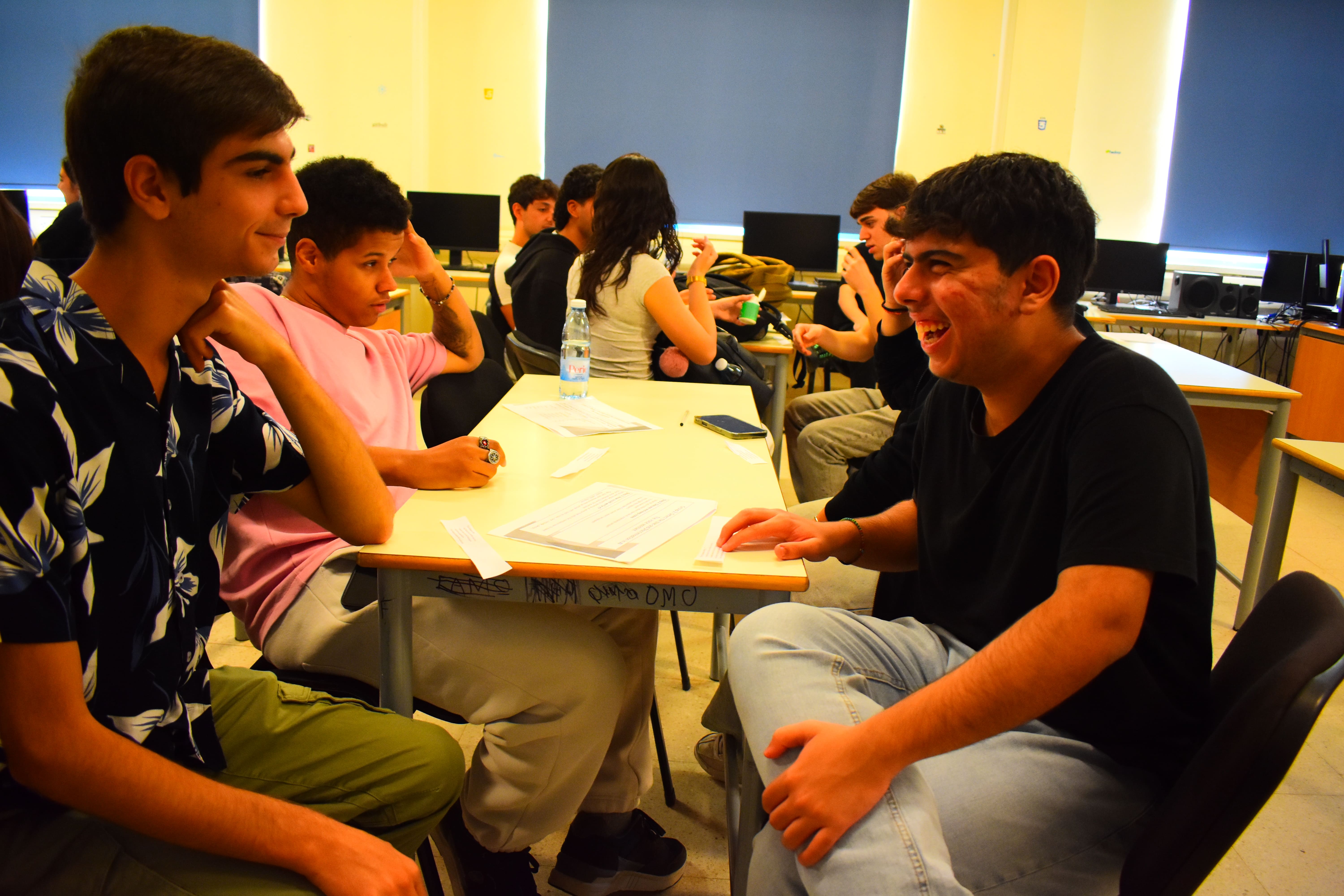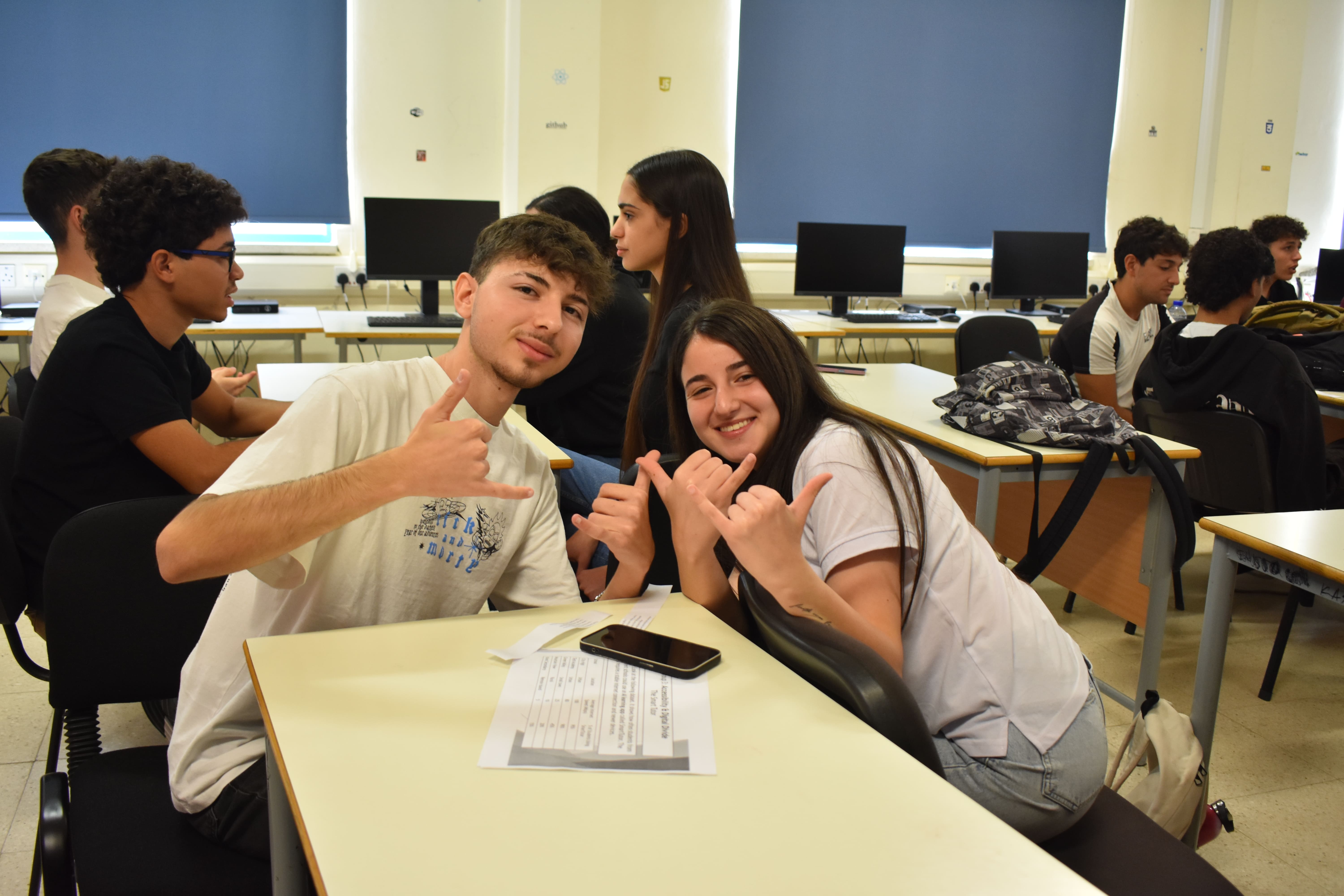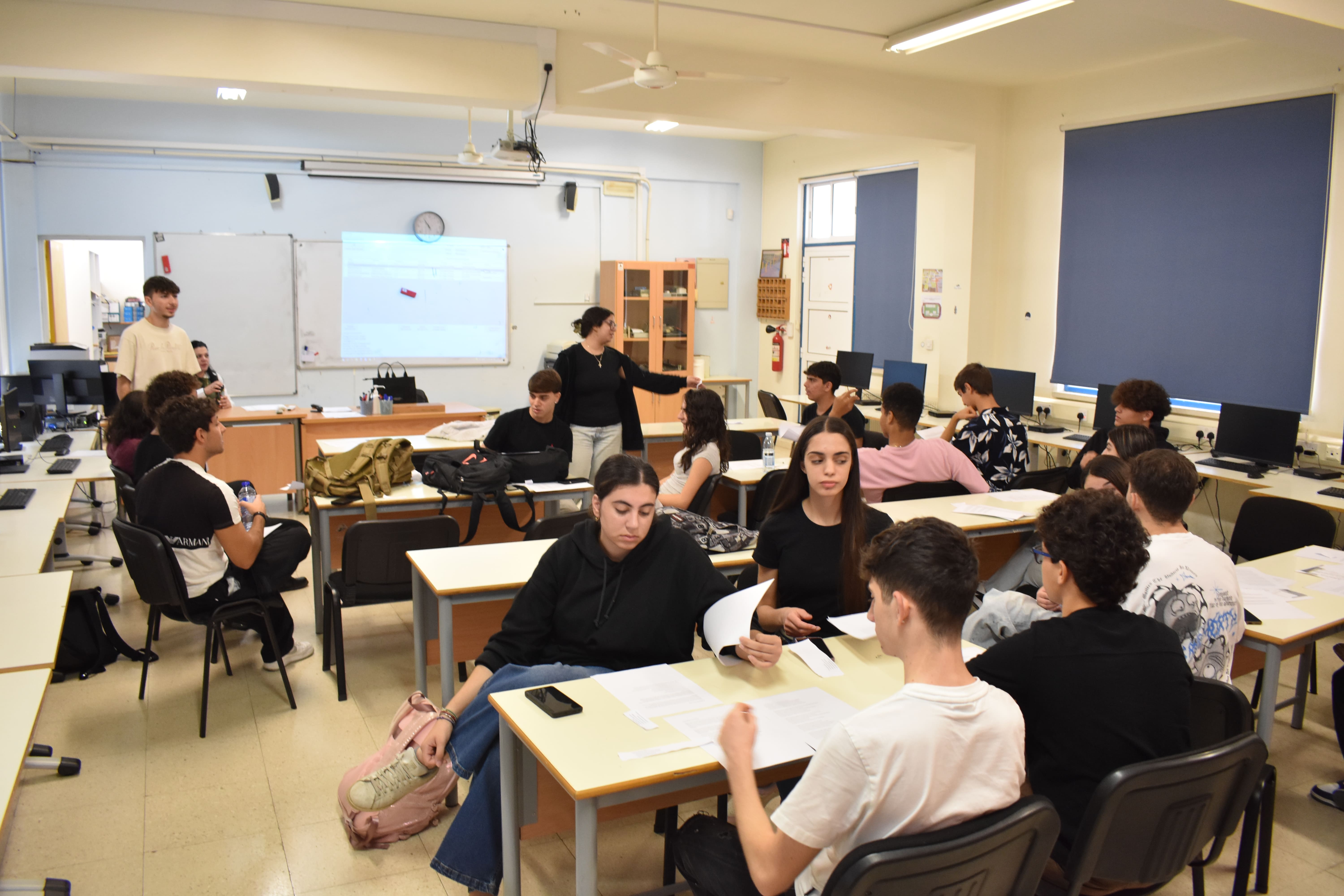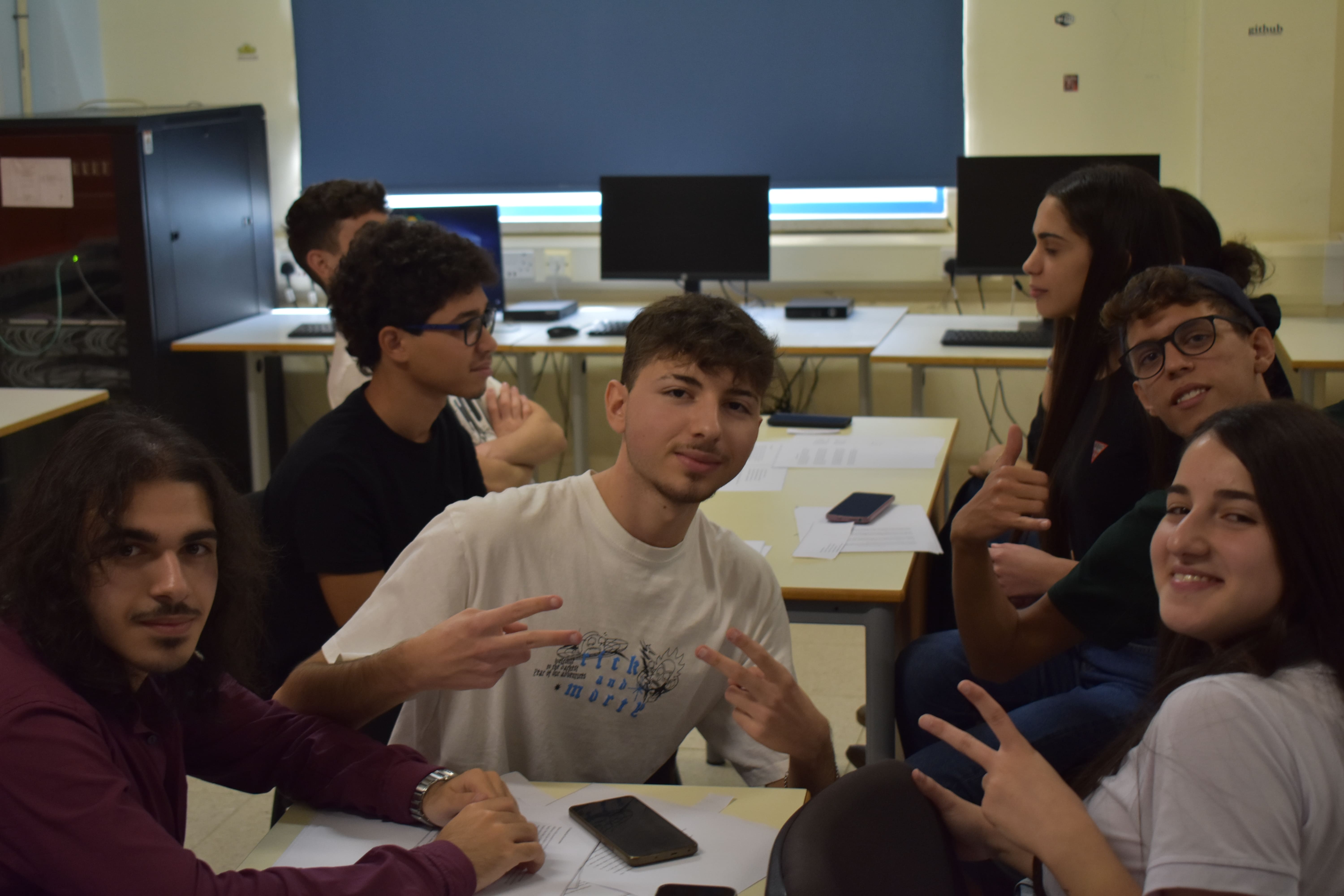 Στη συνέχεια, οι Ιταλοί μαθητές παρακολούθησαν μάθημα Αγγλικών μαζί με τους μαθητές μας, χρησιμοποιώντας την αγγλική γλώσσα ως κοινό μέσο επικοινωνίας σε ένα διαδραστικό και φιλικό περιβάλλον. Το μάθημα έγινε με την καθοδήγηση της καθηγήτριας Αγγλικών, κ. Μελίνας Χαραλάμπους. Το θέμα του μαθήματος ήταν η συμπερίληψη. Αρχικά, το μάθημα ξεκίνησε με καρτέλες γνωριμίας στοχευμένες στο θέμα. Έπειτα δόθηκαν στους μαθητές δύο κείμενα σχετικά κατανόησης με ερωτήσεις, τις οποίες κλήθηκαν τα παιδιά ν’ απαντήσουν και έγινε προβολή σχετικού βίντεο. Τέλος τα παιδιά προέβηκαν σε συμπεράσματα, για το πως θα ενσωματώσουν τη συμπερίληψη στην καθημερινότητά τους.