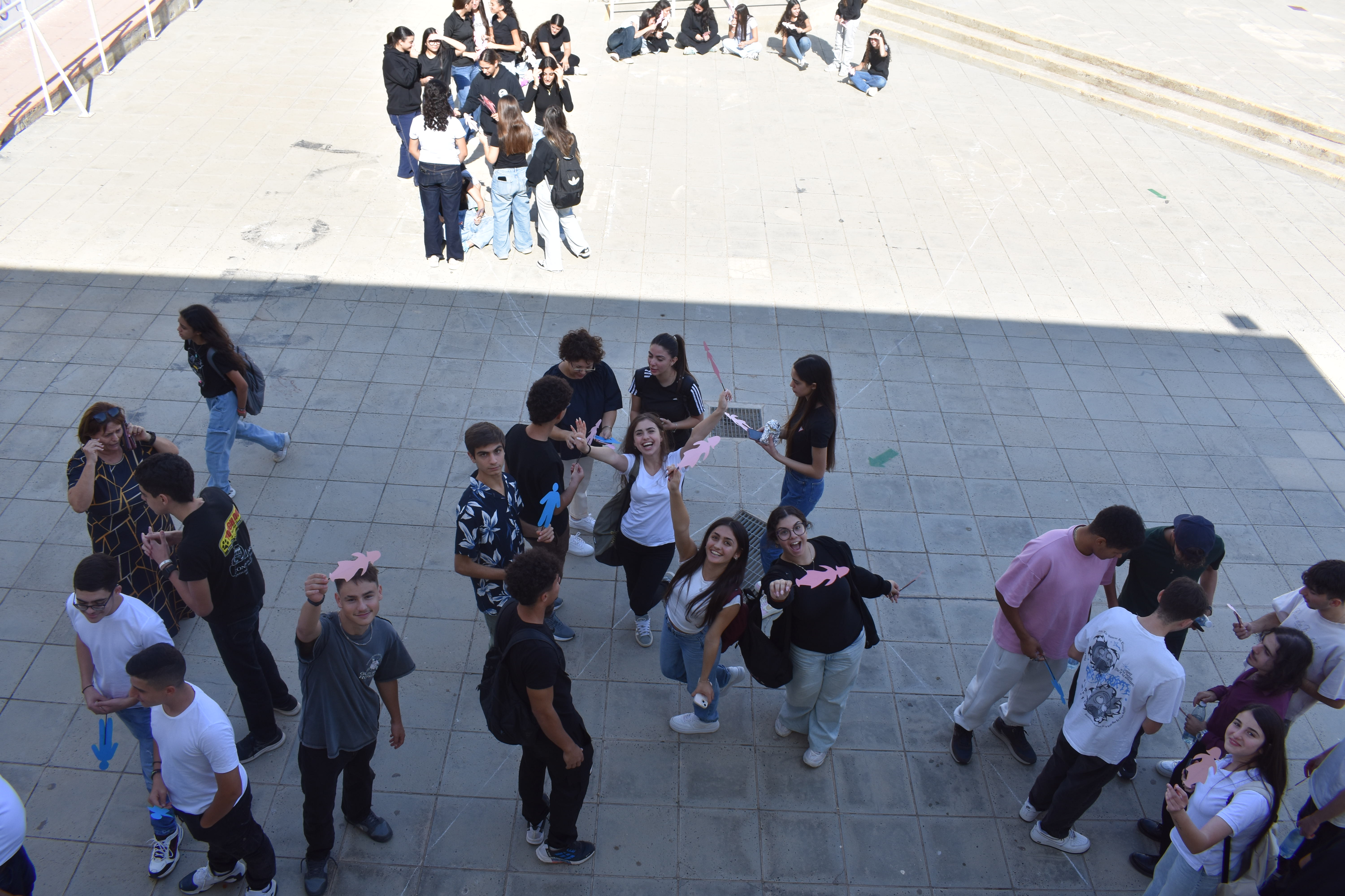 Ιδιαίτερη στιγμή της ημέρας αποτέλεσε η συμμετοχή και των δύο αποστολών στην εκστρατεία ενημέρωσης και ευαισθητοποίησης για τον καρκίνο. Μαθητές και εκπαιδευτικοί κράτησαν ροζ και γαλάζιες φιγούρες και σχημάτισαν το σύμβολο του αγώνα ενάντια στον καρκίνο, στέλνοντας μήνυμα ελπίδας, αλληλεγγύης και ζωής.