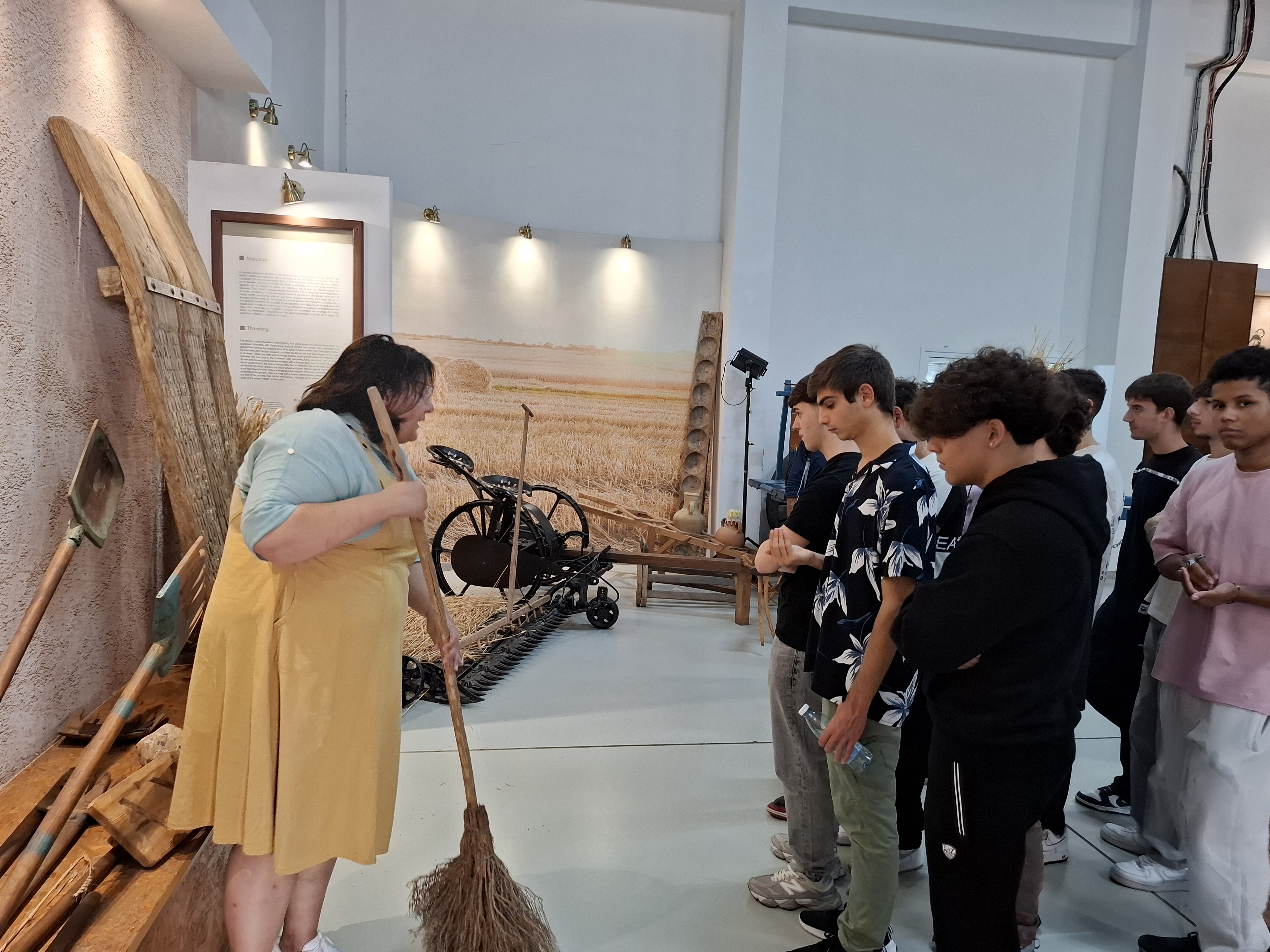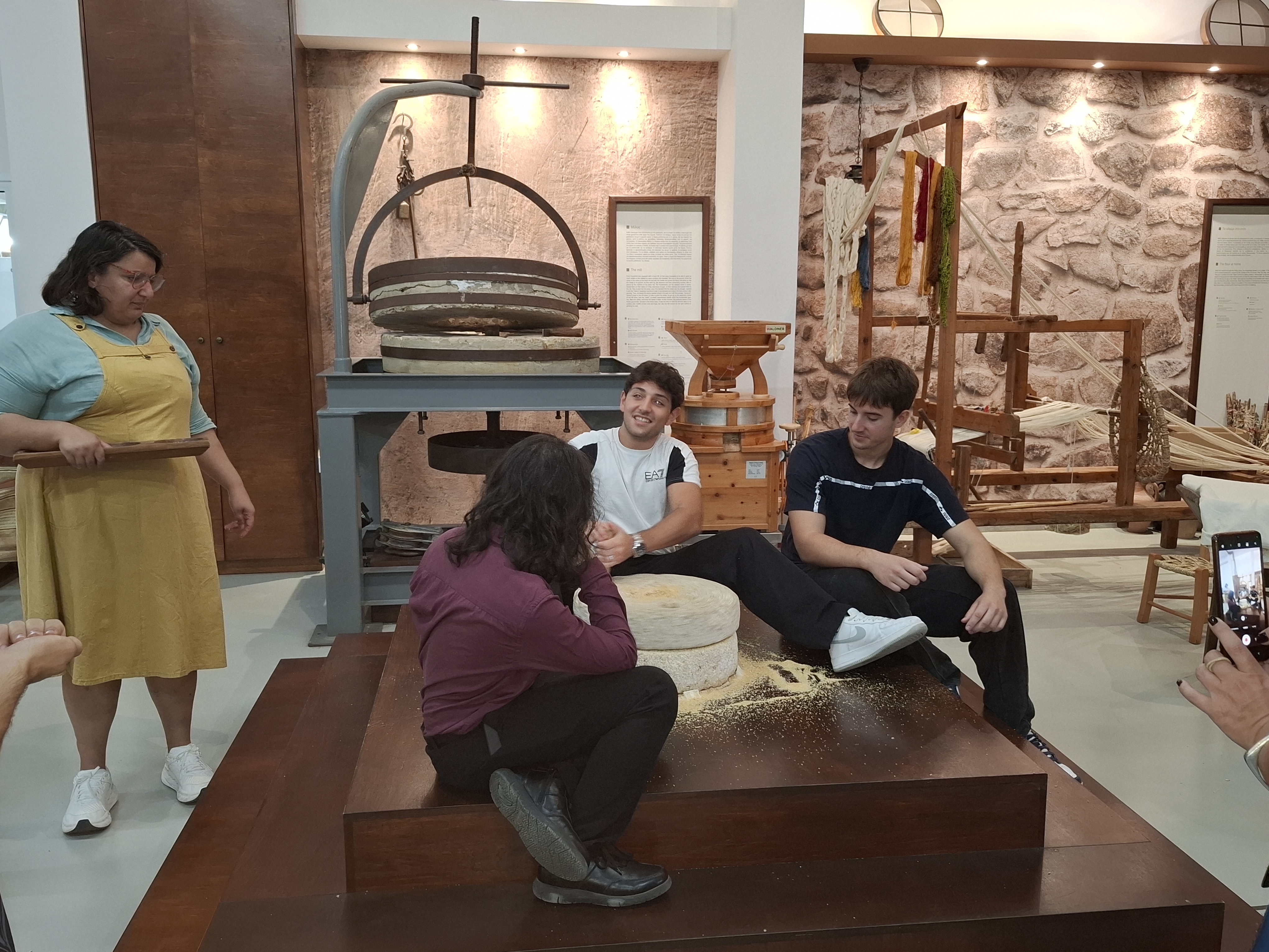 Η ημέρα ολοκληρώθηκε με την επίσκεψη στους Μύλους Χατζηγιώρκη. Οι μαθητές, αρχικά ξεναγήθηκαν και ενημερώθηκαν για την παραδοσιακή διαδικασία της παραγωγής του σιταριού και την εξέλιξη της διαδικασία του αλέσματος μέσα στους αιώνες. Ακολούθως άλεσαν σιτάρι στον χειρόμυλο, με την καθοδήγηση των υπεθύνων, και πήραν φρεσκοαλεσμένο αλεύρι. Τέλος, τα παιδιά συμμετείχαν σε ένα διαδραστικό εργαστήριο, κατά το οποίο συμμετείχαν στην παρασκευή της παραδοσιακής πίτας της σάτζιης με το μέλι, απολαμβάνοντας έτσι μια αυθεντική πολιτιστική και γαστρονομική εμπειρία.