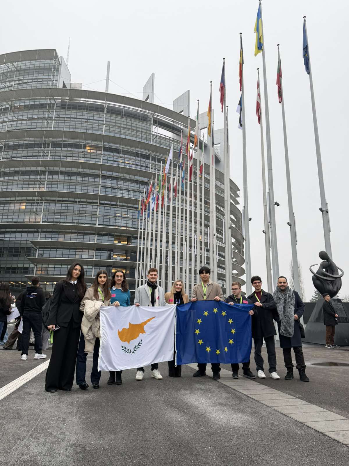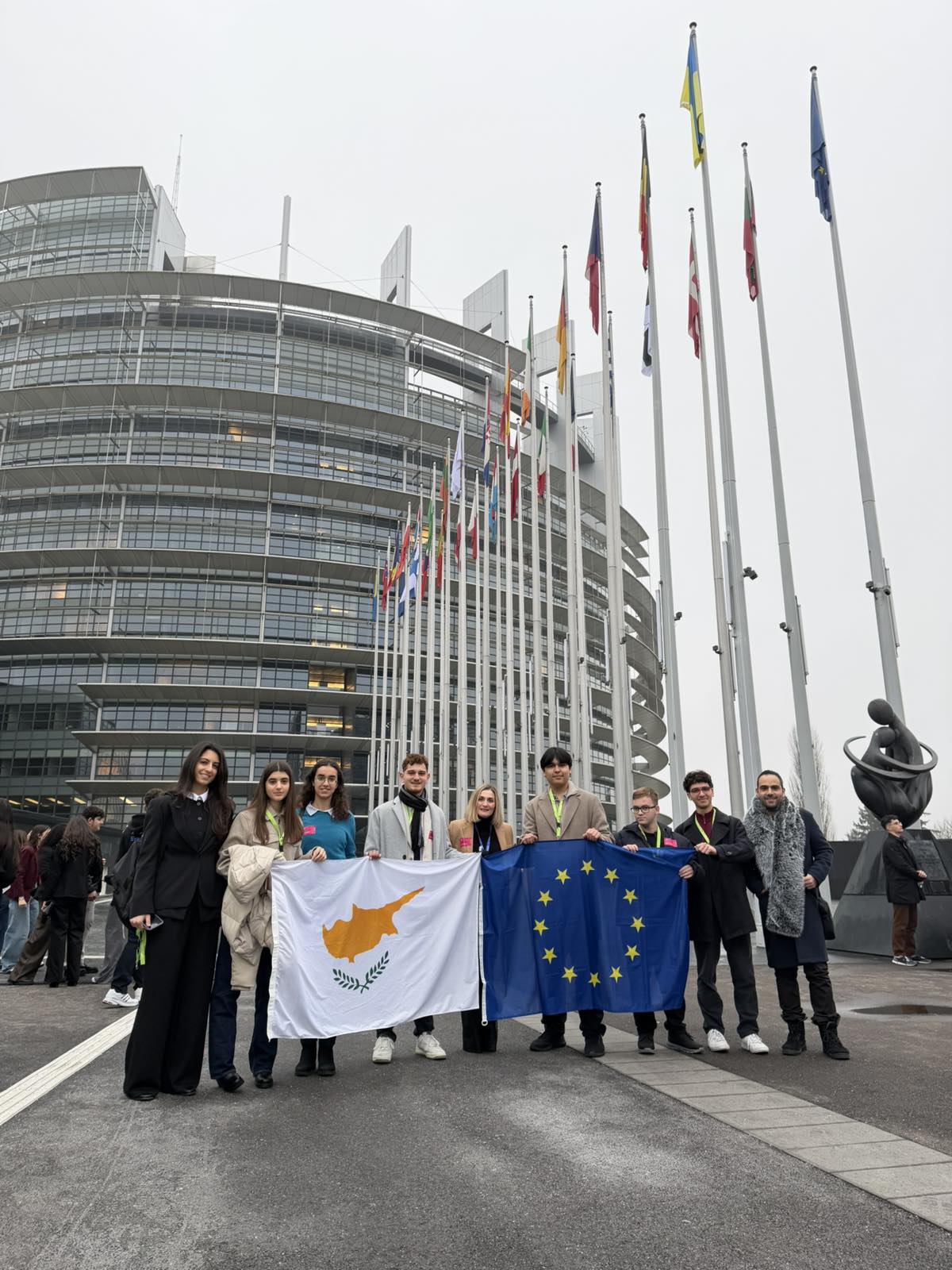 Ο μαθητής του Σχολείου μας Εφραίμ Παντελή, Γ1-6, ο οποίος εξασφάλισε το Γ΄ Βραβείο στον 9ο Παγκύπριο Διαγωνισμό Αρχαίας Ελληνικής Γλώσσας και Γραμματείας, και ο καθηγητής του κ. Γεώργιος Μουστακάς συμμετείχαν στη σύνοδο Euroscola στο Ευρωπαϊκό Κοινοβούλιο στο Στρασβούργο της Γαλλίας στις 6.2.2026. Στο πρόγραμμα συμμετείχαν μαθητές και από τα 27 κράτη-μέλη της Ευρωπαϊκής Ένωσης. Ανάμεσά τους και οι 5 βραβευθέντες μαθητές του εν λόγω Διαγωνισμού. Τα παιδιά κατέθεσαν απόψεις-ερωτήσεις πάνω σε διάφορα επίκαιρα θέματα (κυπριακό πρόβλημα, μεταναστευτικό, περιβαλλοντικό, φτώχεια, κοινωνικός αποκλεισμός κλπ.) εκπροσωπώντας επάξια την Κύπρο και τα σχολεία τους. Ιδιαίτερη συγκίνηση και περηφάνια στη σιδερένια γέφυρα της Φρανκφούρτης της Γερμανίας με την επιγραφή στα αρχαία ελληνικά, η οποία αναγράφει στίχο από την Οδύσσεια του Ομήρου.
