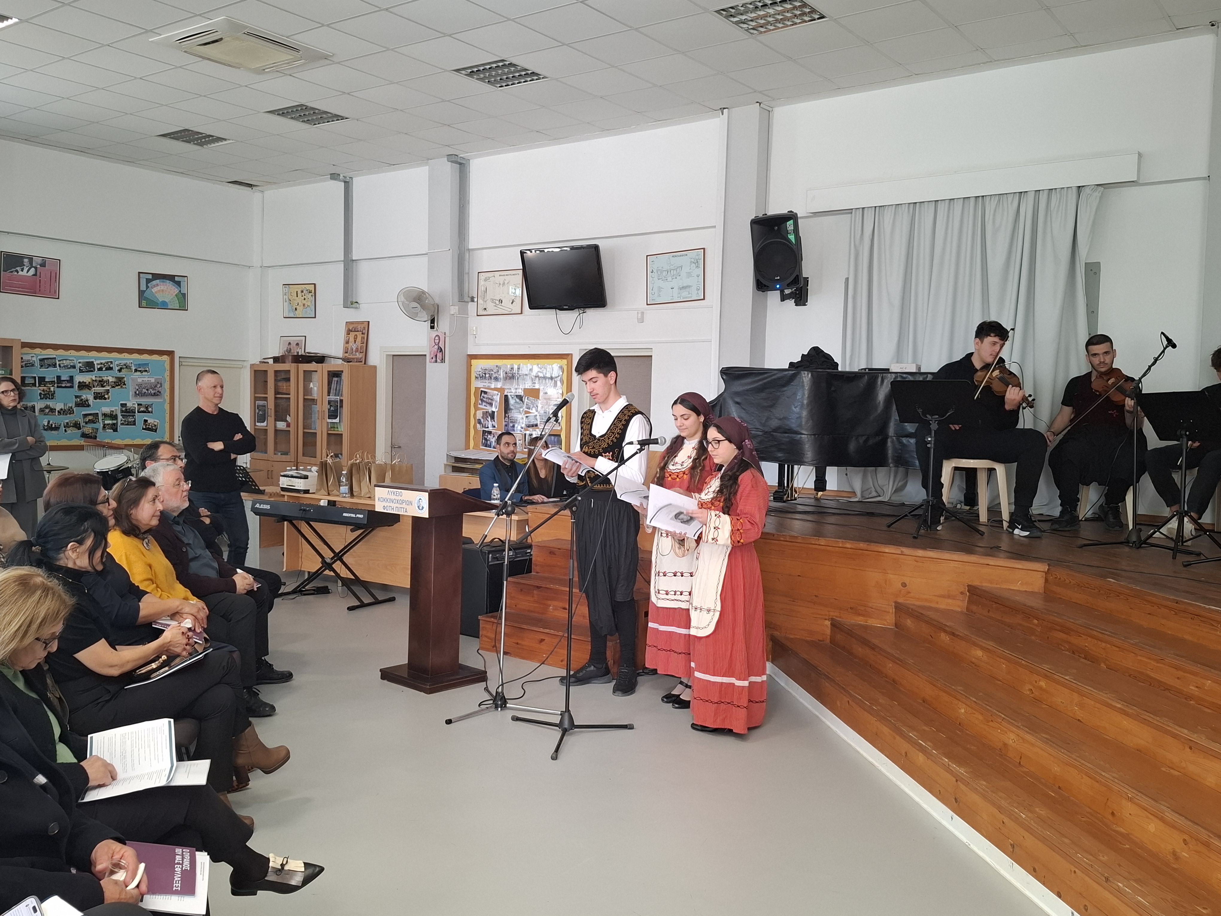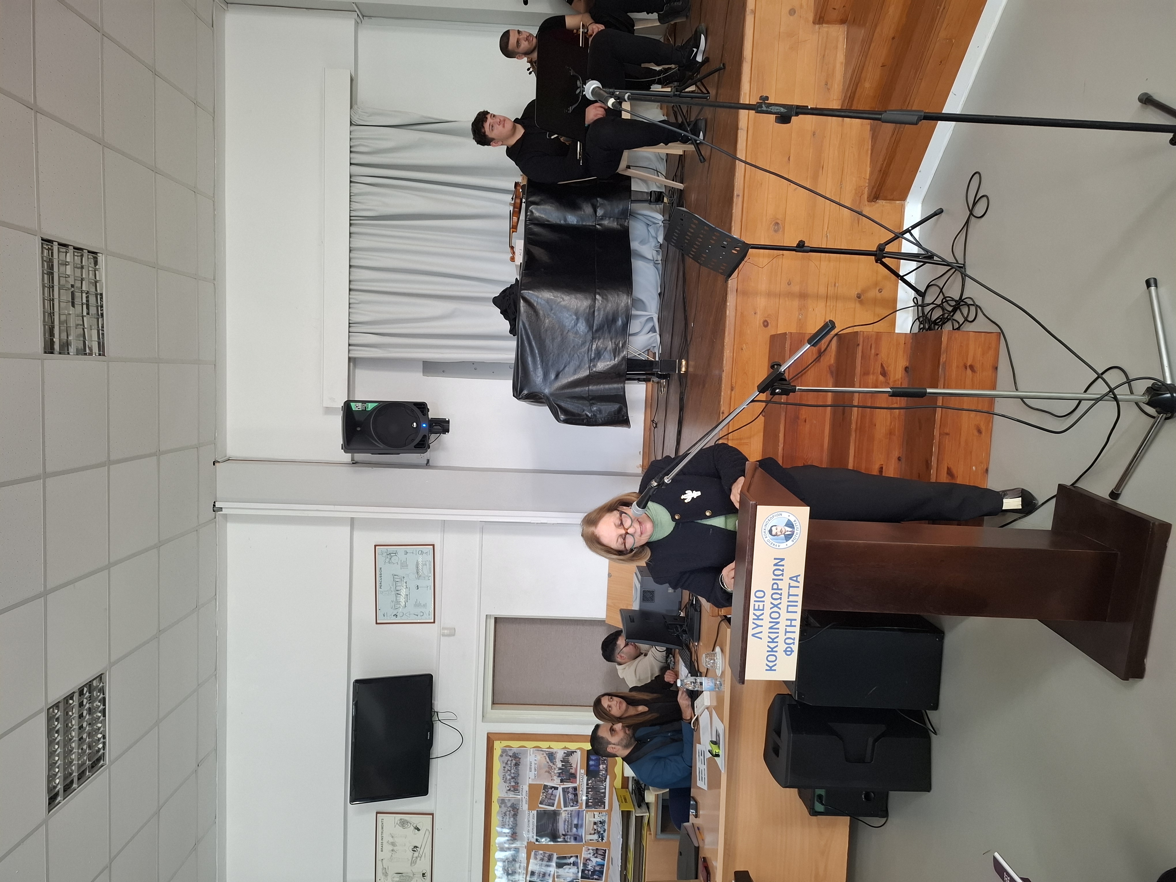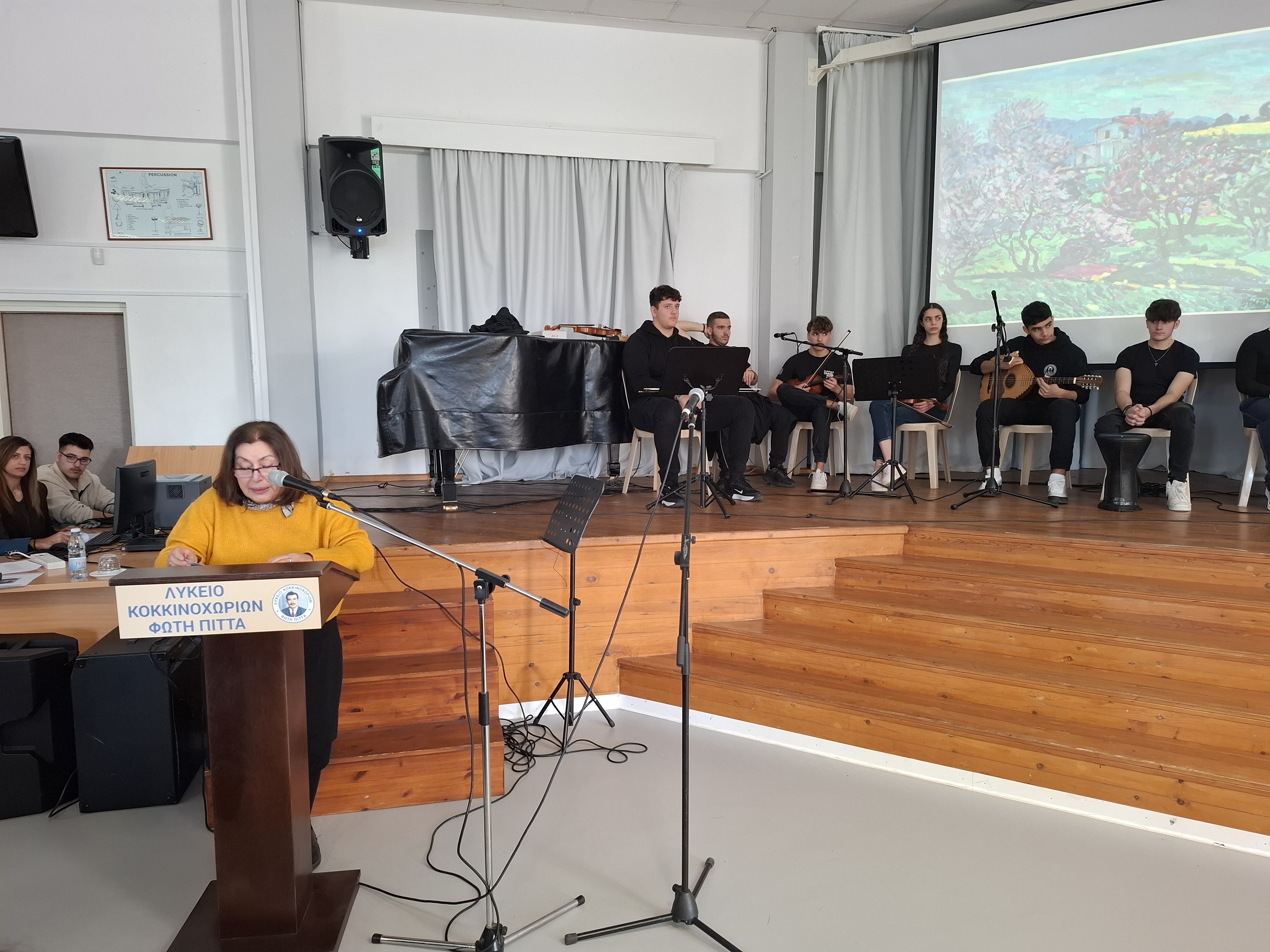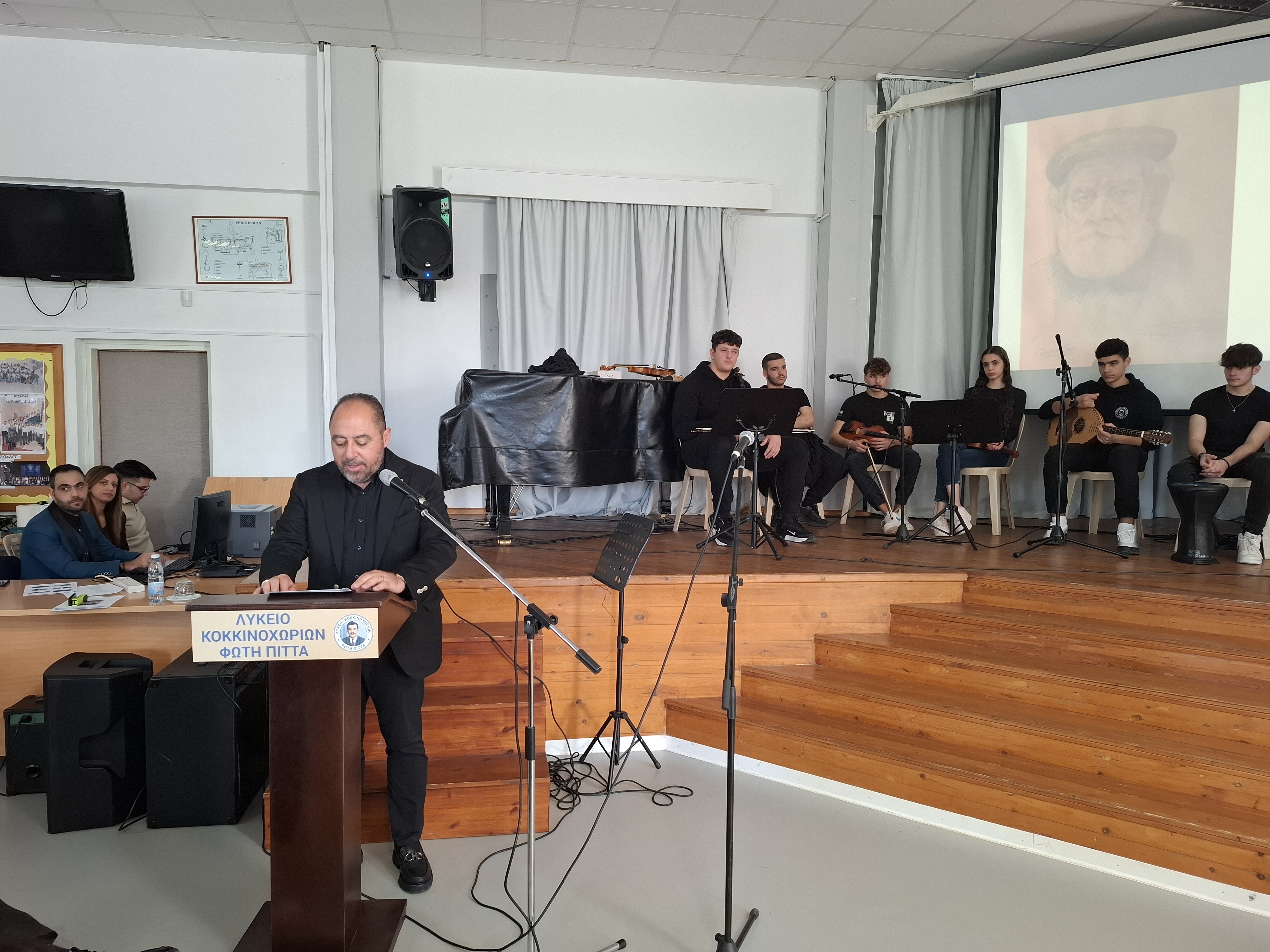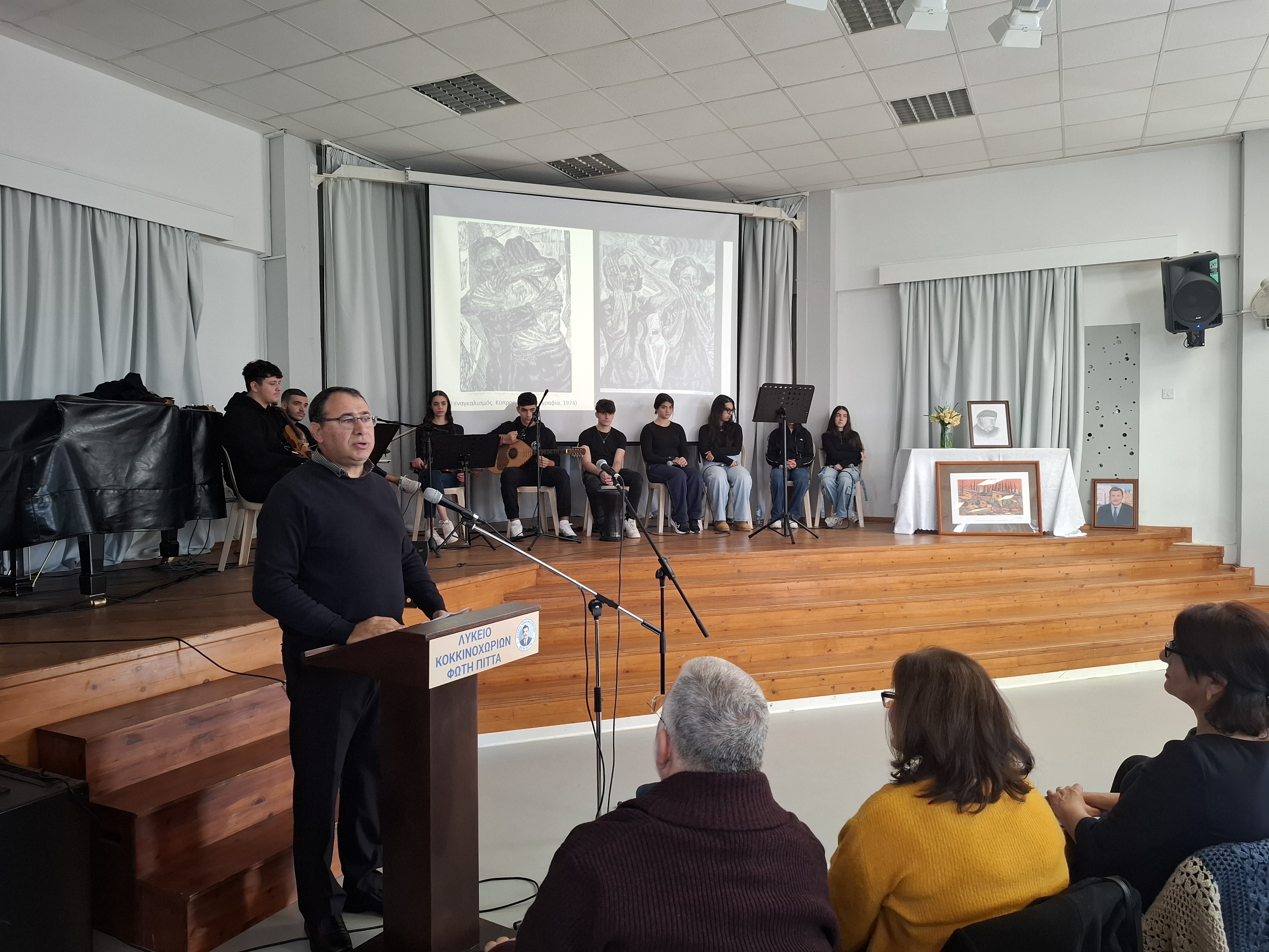 Χαιρετισμούς απηύθυναν ο Διευθυντής του Λυκείου Κοκκινοχωρίων «Φώτη Πίττα» κ.Αδάμος Κακουρής, ο Δήμαρχος Παραλιμνίου-Δερύνειας κ.Γιώργος Νικολέττος, η Επιθεωρήτρια Μέσης Εκπαίδευσης Φιλολογικών Μαθημάτων- Ιστορικός Τέχνης και συγγραφέας του βιβλίου για τον καλλιτέχνη Δρ Τώνια Λοΐζου, η θυγατέρα του και Πρόεδρος του Πολιτιστικού Ιδρύματος «Λευτέρη Οικονόμου» κ.Χριστίνα Οικονόμου-Χαραλάμπους. Ο Γραμματέας του Πολιτιστικού Ιδρύματος κ.Κοσμάς Οικονόμου απήγγειλε το ποίημά του «Νοημοσύνη Τεχνητή». Τη σεμνή τελετή της Ονοματοδοσίας πλαισίωσε ομάδα μαθητών παρουσιάζοντας καλλιτεχνικό δρώμενο-δραματοποίηση στίχων του ερμηνευτή-μελετητή της κυπριακής παραδοσιακής μουσικής Μιχάλη Χατζημιχαήλ.