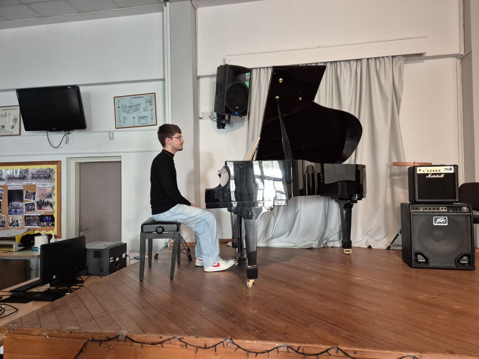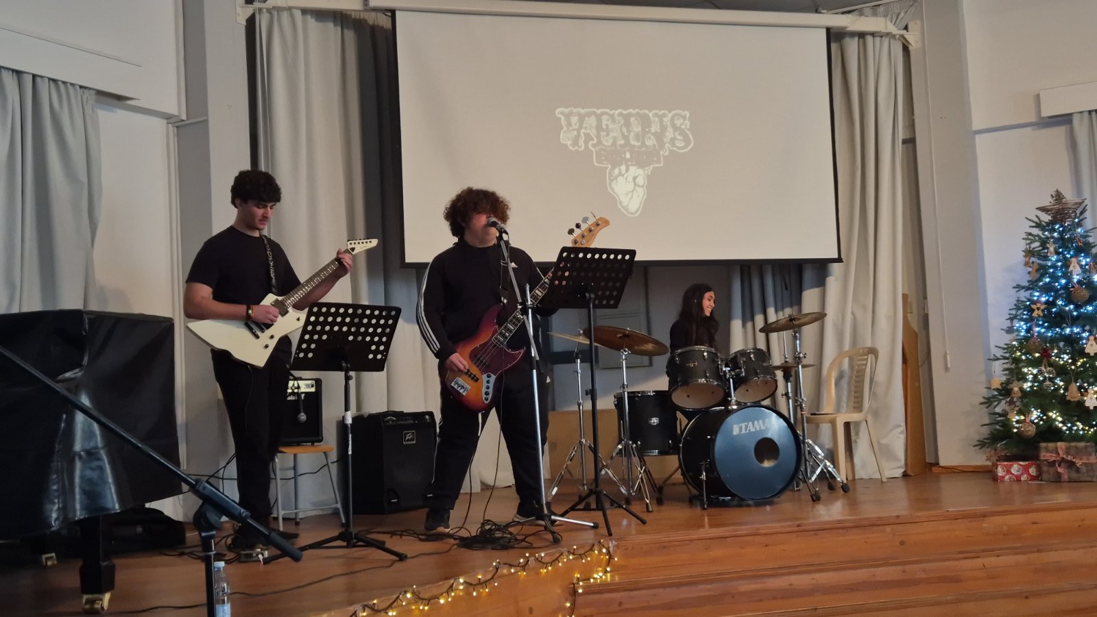 17 Δεκεμβρίου 2025 - Ροκ Μουσική: Λάζαρος Κολοκασίδης (Α2.1) (Ηλεκτρική κιθάρα), Μάριος Ματθαίου (Α2.1) (Μπάσο), Μιχαήλ Αγγελική (Α3-4) (Ντραμς)