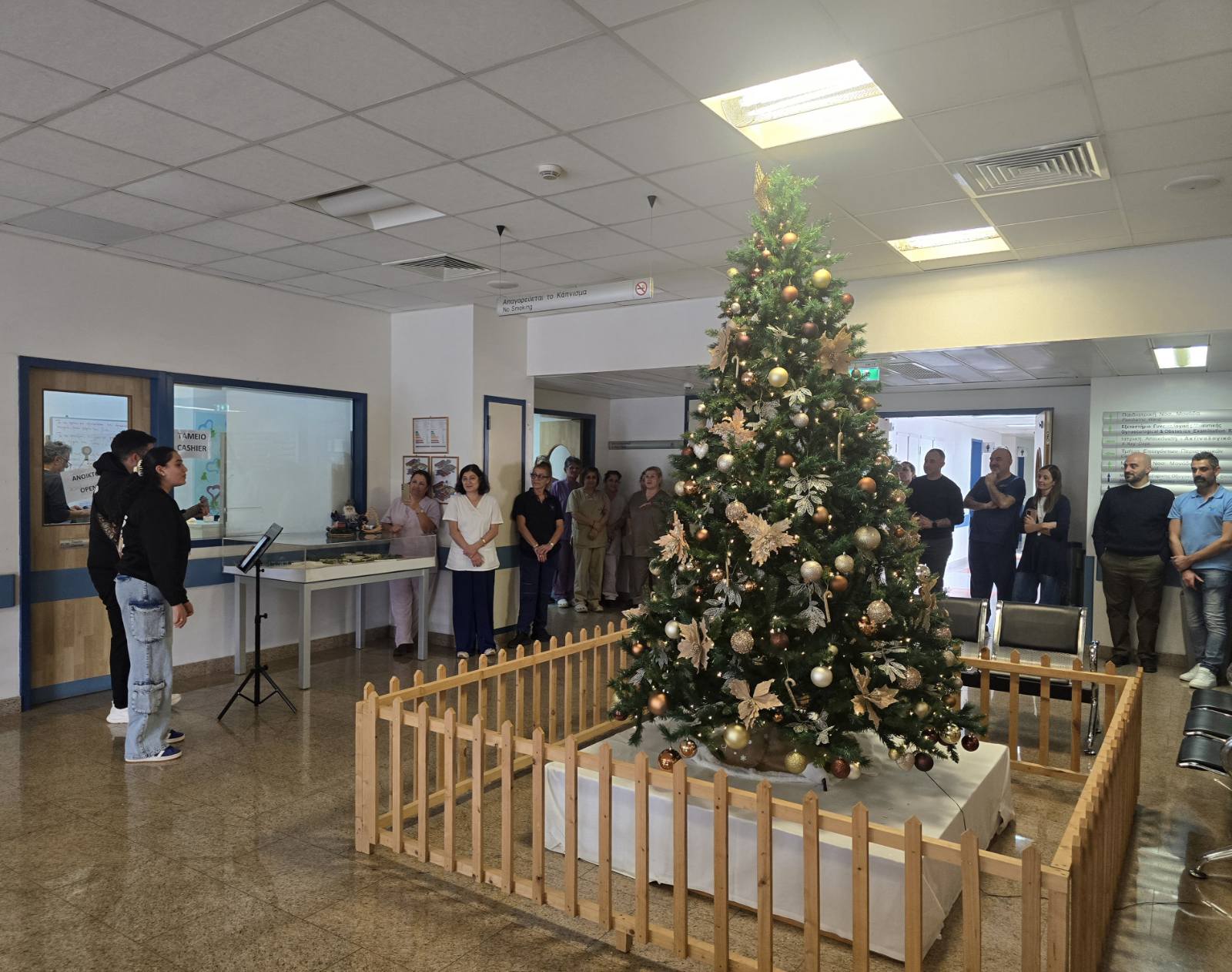 Την Πέμπτη 4/12/2025, οι μαθητές του Λυκείου Κοκκινοχωρίων Φώτη Πίττα έφεραν το χριστουγεννιάτικο πνεύμα στο Γενικό Νοσοκομείο Αμμοχώστου. Οι μαθητές μας στόλισαν το χριστουγεννιάτικο δέντρο στην είσοδο του νοσοκομείου και γέμισαν τον χώρο με όμορφα, χριστουγεννιάτικα τραγούδια, προσφέροντας χαρά και αισιοδοξία σε ασθενείς, προσωπικό και επισκέπτες.