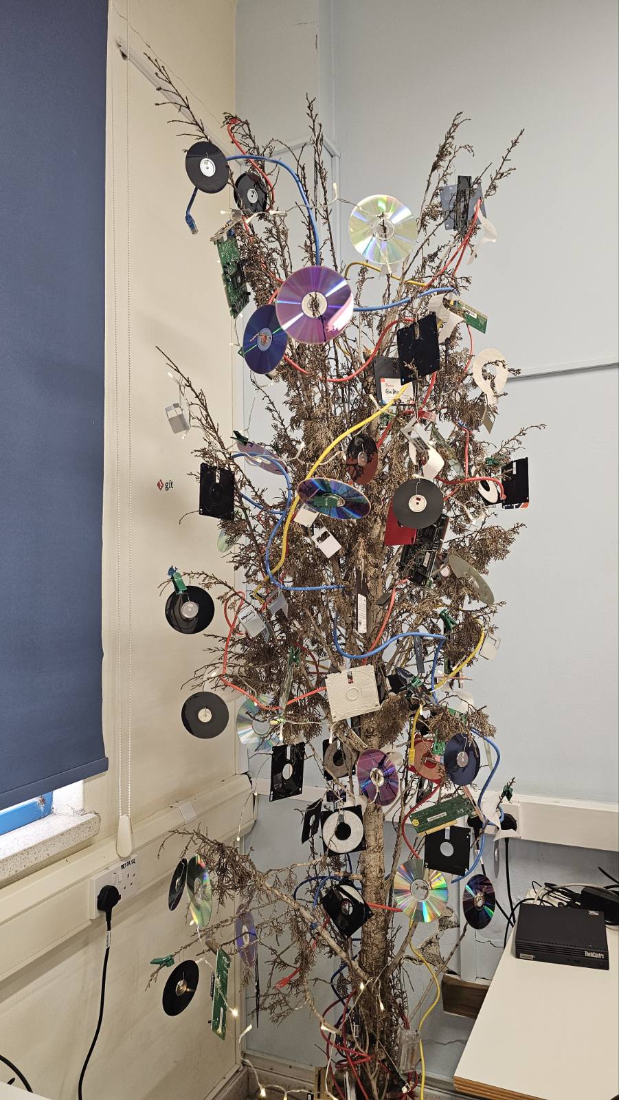 Φέτος, μαθητές του μαθήματος «Εφαρμογές Πληροφορικής», μαζί με τους καθηγητές Πληροφορικής, δημιούργησαν ένα μοναδικό «Χριστουγεννιάτικο δέντρο Πληροφορικής», που εντυπωσιάζει όλη τη σχολική κοινότητα. Με παλιές δισκέτες, CD, καλώδια και άλλα τεχνολογικά υλικά, κατασκεύασαν ένα πρωτότυπο και δημιουργικό έργο, δίνοντας νέα ζωή σε αντικείμενα που δεν χρησιμοποιούνται πια.