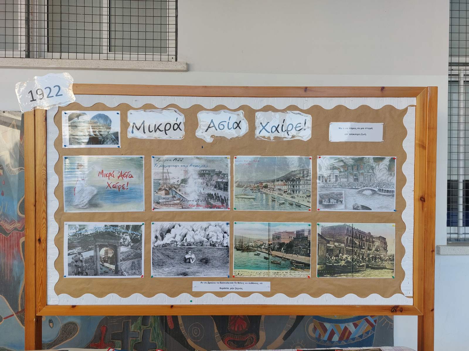 Με αφορμή την Ημέρα Μνήμης της Μικρασιατικής Καταστροφής πραγματοποιήθηκαν στο σχολείο μας δράσεις ενημέρωσης και ευαισθητοποίησης των μαθητών. Στο προαύλιο αναρτήθηκε πινακίδα και έκθεση βιβλίων σχετικών με τη Μικρά Ασία. Σκοπός μας η διατήρηση της ιστορικής μνήμης και η απόδοση τιμής στους θανόντες και τους πρόσφυγες του 1922.