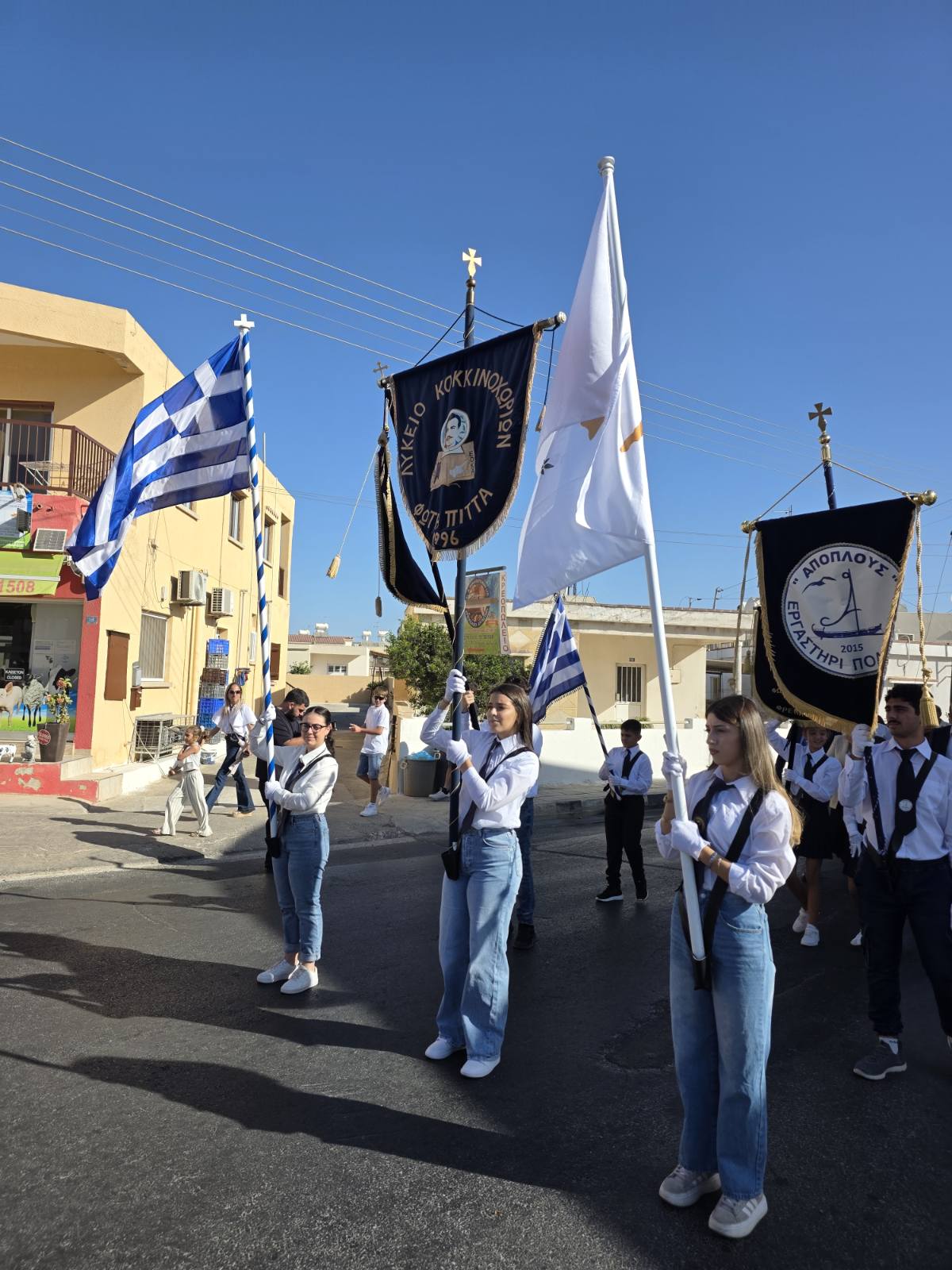 Σε κλίμα συγκίνησης και μεγαλοπρέπειας στο Λύκειο Κοκκινοχωρίων Φώτη Πίττα, τη Δευτέρα 27 Οκτωβρίου τιμήσαμε την Επέτειο του ΟΧΙ και τη γιορτή της Σημαίας. Με σεβασμό και εθνική περηφάνεια αποδώσαμε τιμές στο εθνικό μας σύμβολο, αυτό το ιερό πανί, το γαλανό και τ΄ άσπρο, που αντιπροσωπεύει την ιστορία και τους αγώνες του Ελληνισμού. Με δέος και ευγνωμοσύνη αποτίναμε φόρο τιμής στους ηρωικούς αγωνιστές της Πίνδου και στους κατοπινούς μάρτυρες της ελληνικής εθνικής αντίστασης στα χρόνια της τριπλής κατοχής, γιατί «την ώρα που ο φασισμός έσκιζε τον κόσμο, απ’ την Ελλάδα φάνηκε το φως».