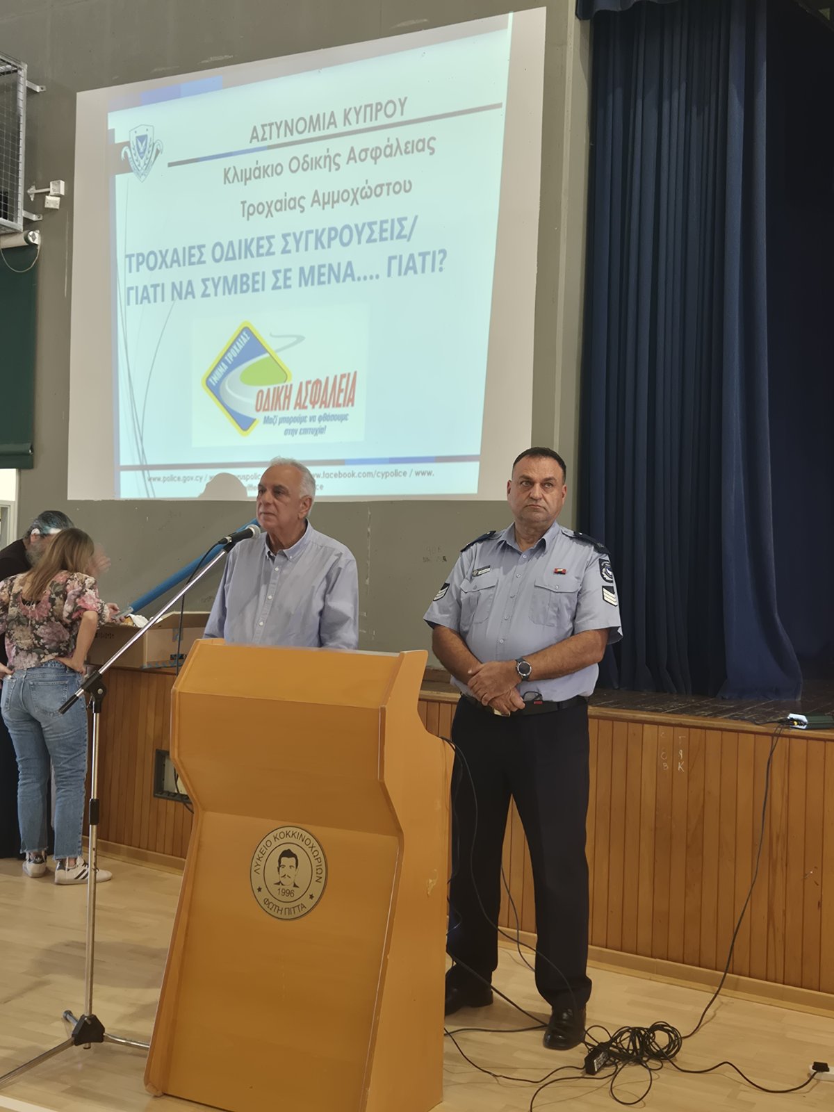 Διάλεξη για την Οδική Ασφάλεια πραγματοποιήθηκε στο σχολείο μας, την Τετάρτη 29 Οκτωβρίου, από την Πρόεδρο του Ιδρύματος Οδικής Ασφάλειας «Γιώργος Μαυρίκιος», κα. Λένα Κατελάρη, τον Πρεσβευτή Οδικής Ασφάλειας, κ. Αλέξη Δημητρίου, τον κ. Ρένο Ευαγγελάκη, καθώς και τον Υπεύθυνο Οδικής Ασφάλειας Αμμοχώστου κ. Γιώργο Δημητρίου.
