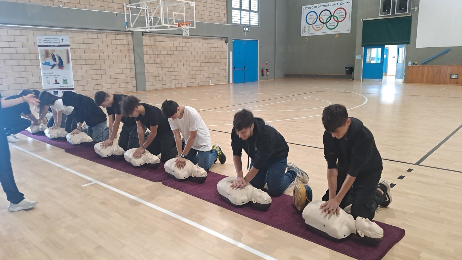 Στο πλαίσιο της Εβδομάδας Επανεκκίνησης Καρδιάς πραγματοποιήθηκε στο σχολείο μας επίδειξη Καρδιοπνευμονικής Αναζωογόνησης (ΚΑΡΠΑ) από επαγγελματίες υγείας. Οι μαθητές και οι μαθήτριες της Β΄ τάξης είχαν την ευκαιρία να συμμετάσχουν ενεργά, εφαρμόζοντας στην πράξη τις τεχνικές καρδιοσυμπιέσεων πάνω σε ειδικά προπλάσματα.