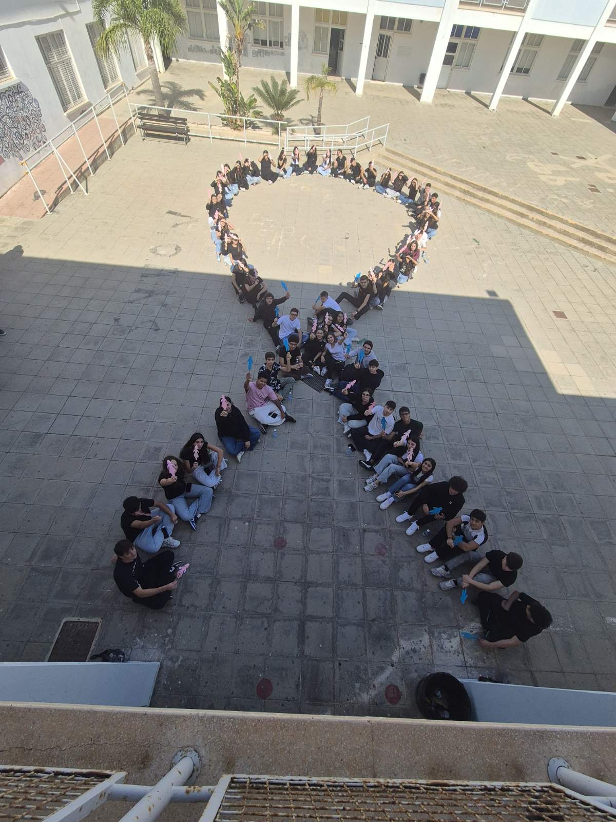 Οι μαθητές και οι μαθήτριες συμμετείχαν ενεργά, σχημάτισαν το σύμβολο της καμπάνιας και μετέφεραν δυνατά μηνύματα ελπίδας, συμπαράστασης και αλληλεγγύης προς όσους δοκιμάζονται από τη νόσο.